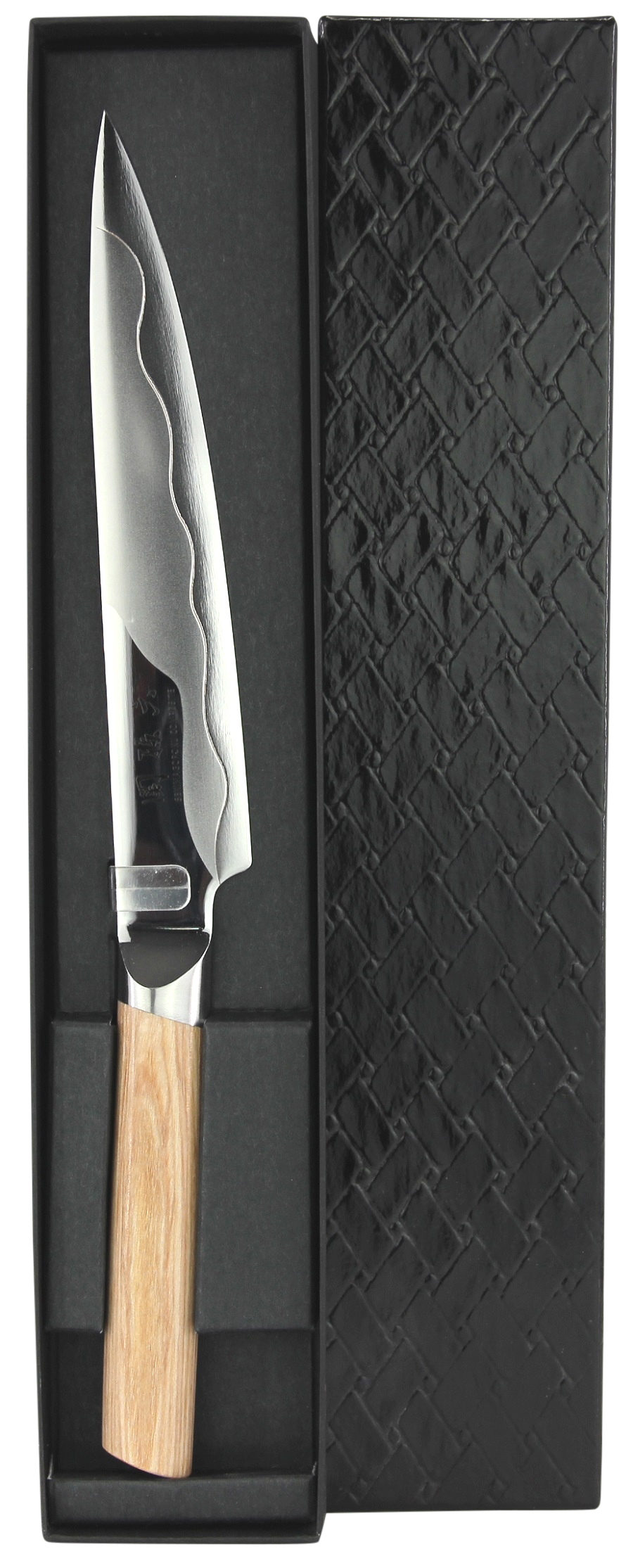 Der helle, quer gemaserte Pakkaholz-Griff ist nahtlos